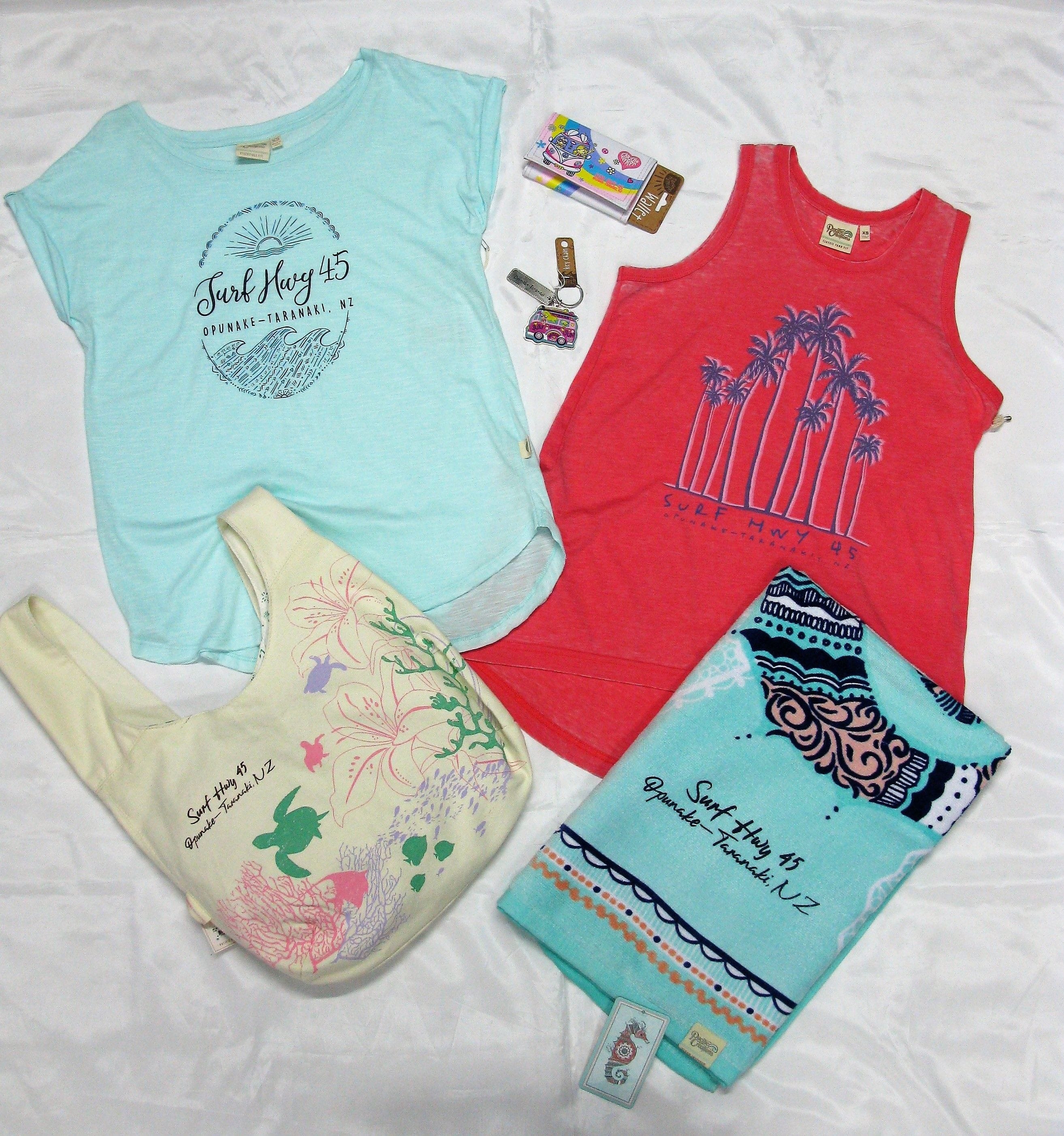 We have a souvenir range of Opunake and Surf Highway 45 tees and accessories as well as the Kia Kaha range, possum and Merino clothing and accessories, also baby gifts for new arrivals.